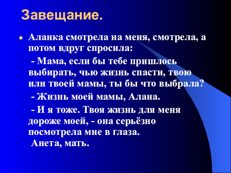 Аланка смотрела на меня, смотрела, а потом вдруг спросила: