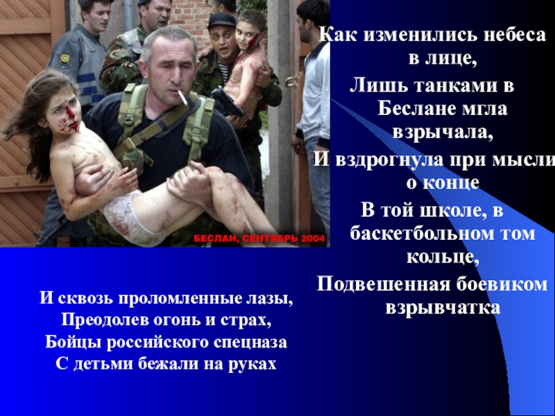 Слайд 54Город Беслан, опустел, и детишек здесь