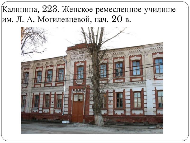 Слайд 60Калинина, 223. Женское ремесленное училище им. Л. А. Могилевцевой, нач. 20