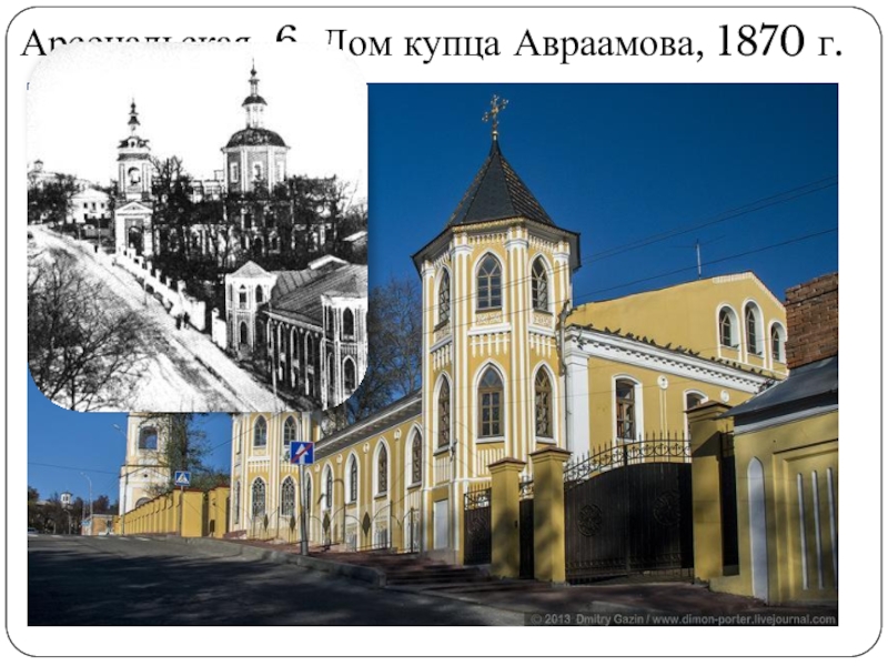 Слайд 18 Арсенальская, 6. Дом купца Авраамова, 1870 г.