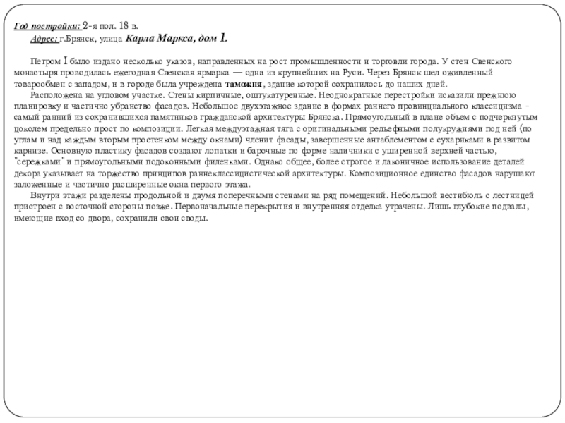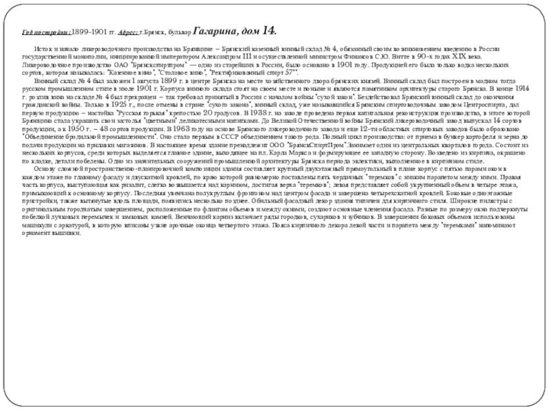 Слайд 38Год постройки: 1899-1901 гг. Адрес: г.Брянск, бульвар Гагарина, дом 14.