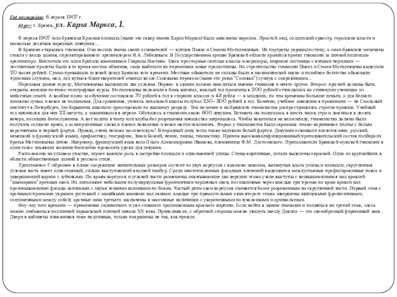 Слайд 26Карла Маркса, 2. Женская гимназия, 1907 г.