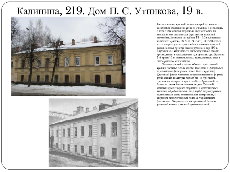 Слайд 57Калинина, 219. Дом П. С. Утникова, 19 в.