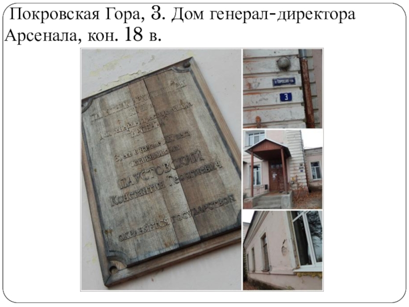 Слайд 20 Покровская Гора, 3. Дом генерал-директора Арсенала, кон. 18 в.