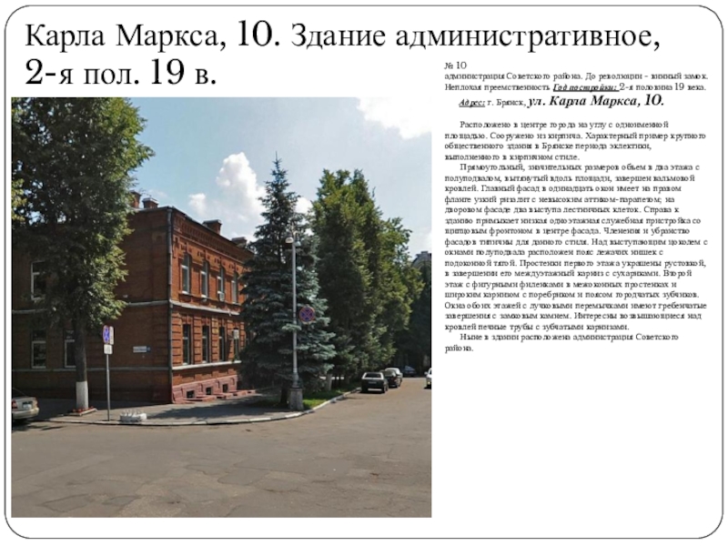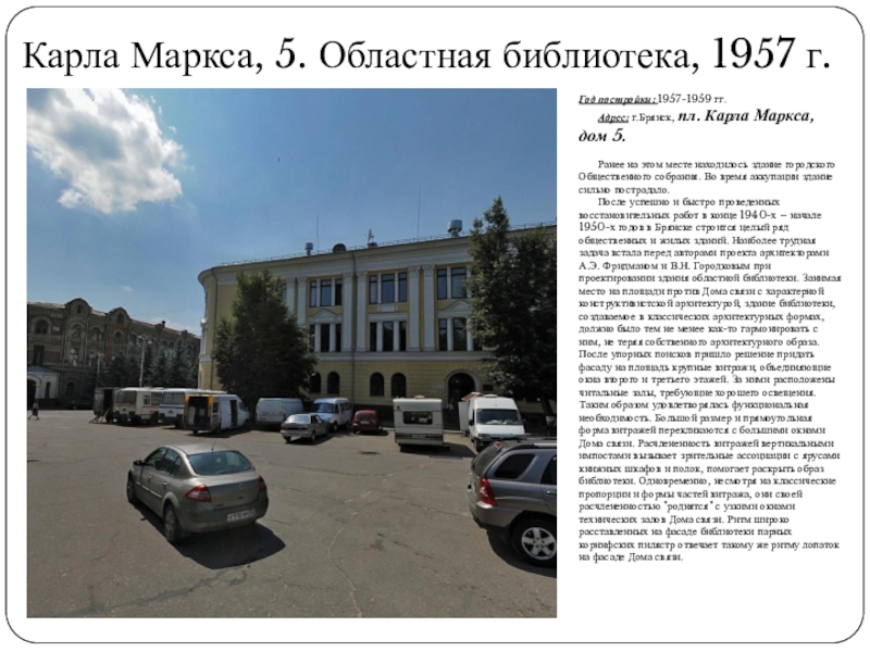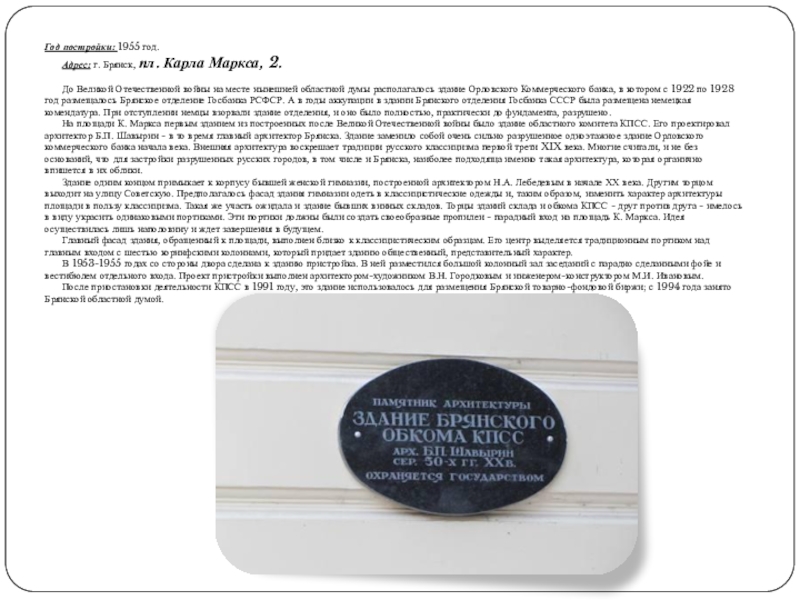 Слайд 28Карла Маркса, 2. Брянский обком КПСС, 1955 г.