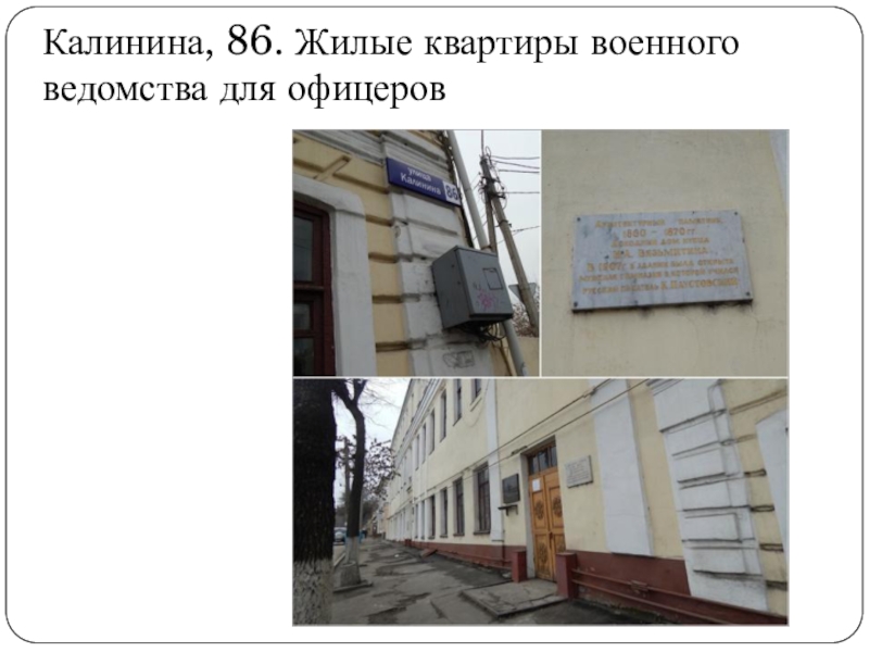 Слайд 49Калинина, 86. Жилые квартиры военного ведомства для офицеров