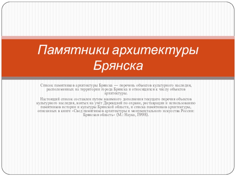 Список памятников архитектуры Брянска — перечень объектов культурного наследия,