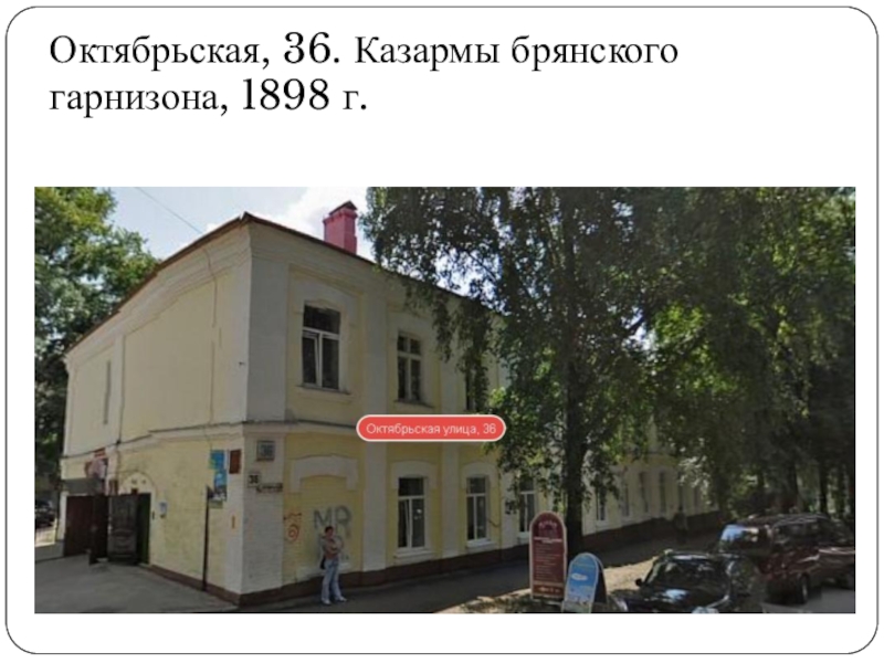 Слайд 78Октябрьская, 36. Казармы брянского гарнизона, 1898 г.