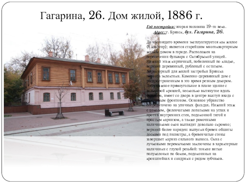 Слайд 10 Гагарина, 26. Дом жилой, 1886 г.
