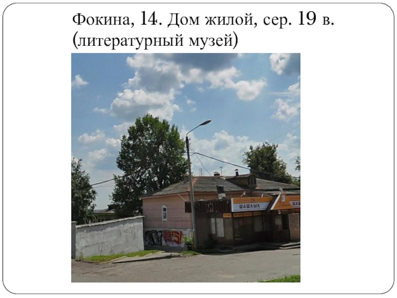Слайд 68Фокина, 14. Дом жилой, сер. 19 в. (литературный музей)