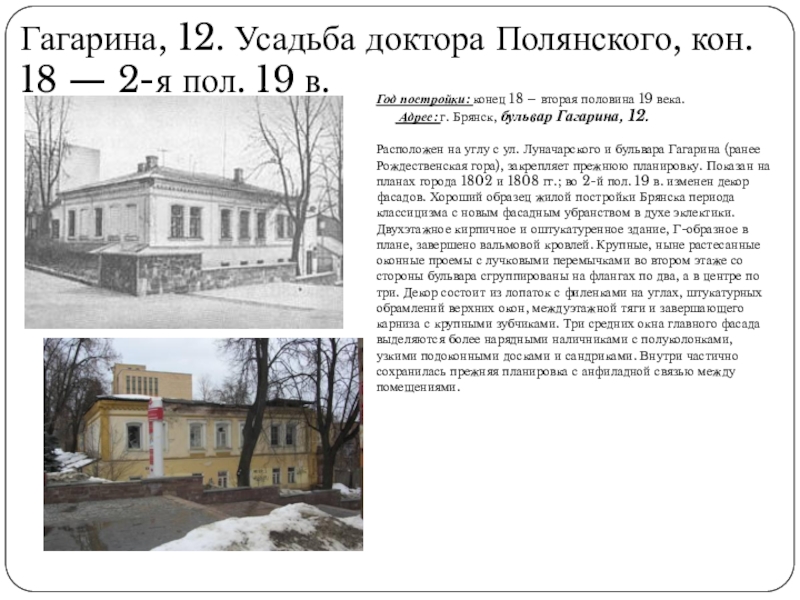 Слайд 6Гагарина, 12. Усадьба доктора Полянского, кон. 18 — 2-я пол. 19