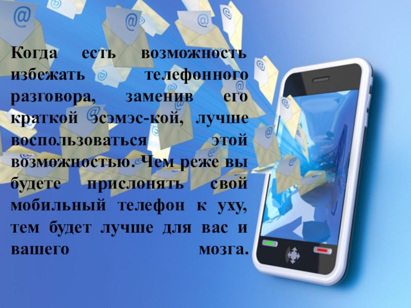 Слайд 8Когда есть возможность избежать телефонного разговора, заменив его краткой эсэмэс-кой, лучше