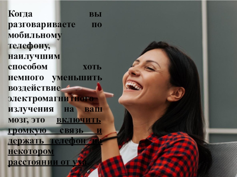 Слайд 4Когда вы разговариваете по мобильному телефону, наилучшим способом хоть немного уменьшить