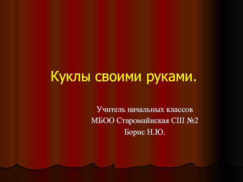 Куклы своими руками.Учитель начальных классовМБОО Старомайнская СШ №2Борис Н.Ю.