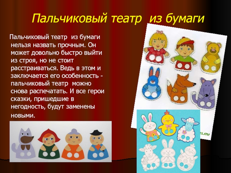 Пальчиковый театр из бумаги  Пальчиковый театр из бумаги нельзя назвать прочным. Он может довольно быстро выйти