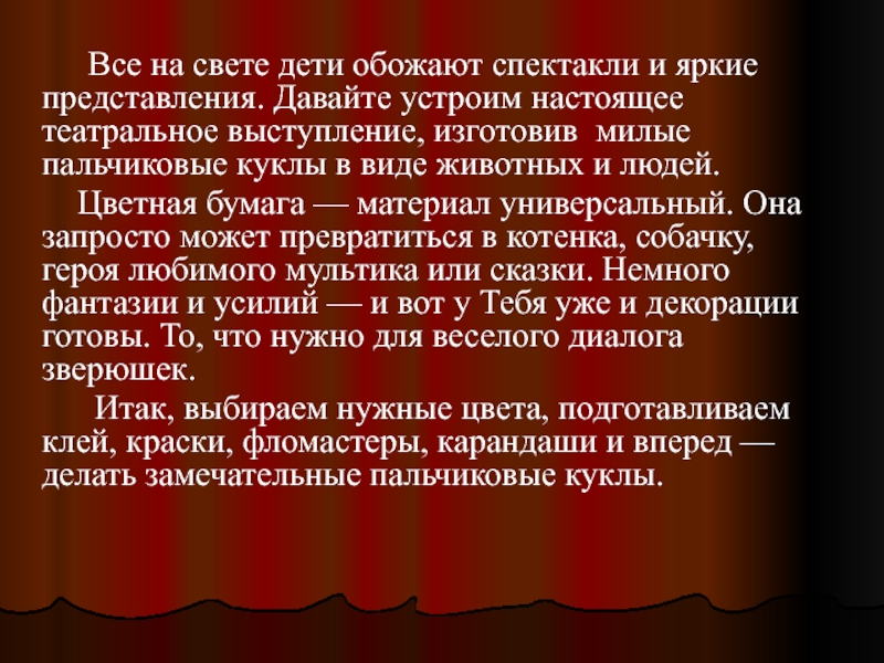 Все на свете дети обожают спектакли и яркие представления. Давайте