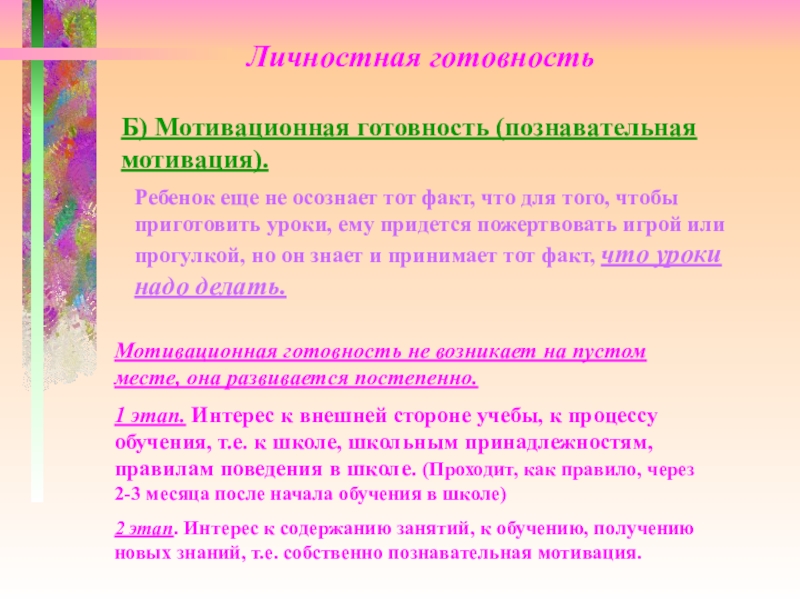 Мотивационная готовность не возникает на пустом месте, она развивается постепенно.