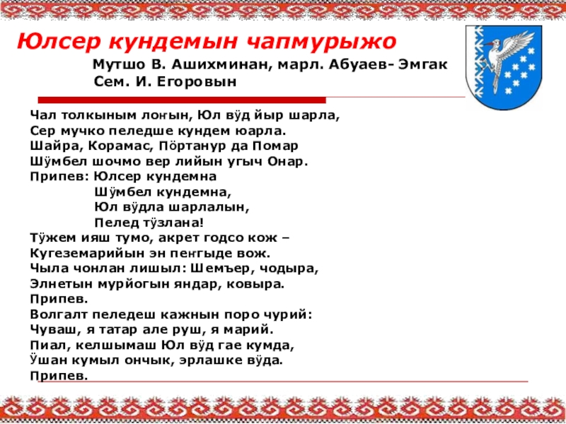 Чал толкыным лоҥын, Юл вӱд йыр шарла,