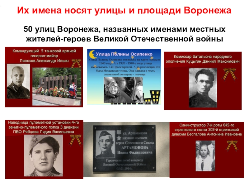 Дорогой ценой досталась Победа, более 100 тысяч человек погибло в боях за Воронеж.