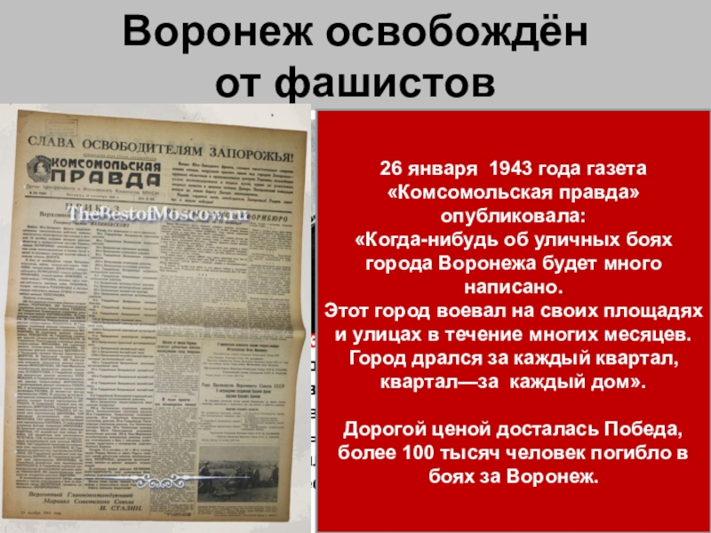 26 января 1943 года газета «Комсомольская правда» опубликовала: