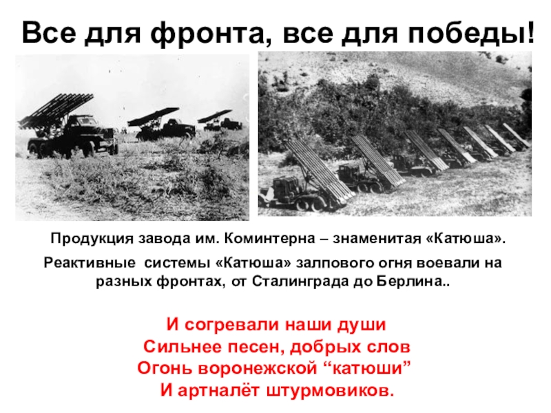 Продукция завода им. Коминтерна – знаменитая «Катюша».