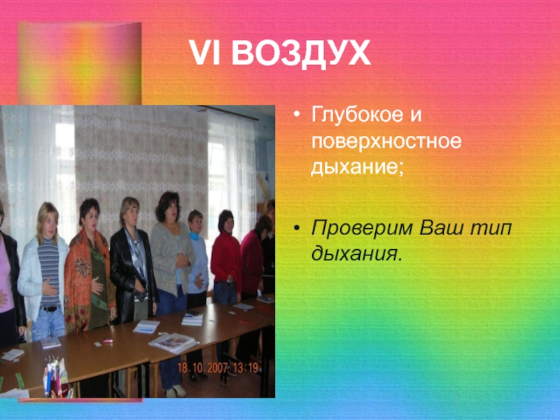VI ВОЗДУХГлубокое и поверхностное дыхание;Проверим Ваш тип дыхания.