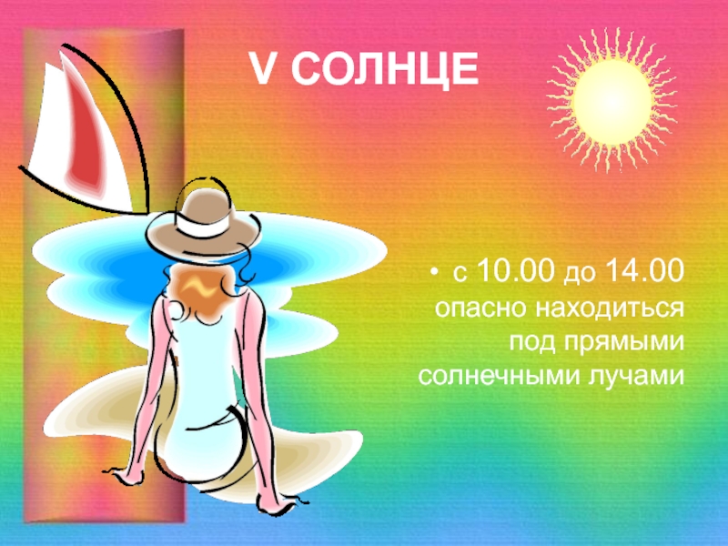 V СОЛНЦЕс 10.00 до 14.00 опасно находиться под прямыми солнечными лучами