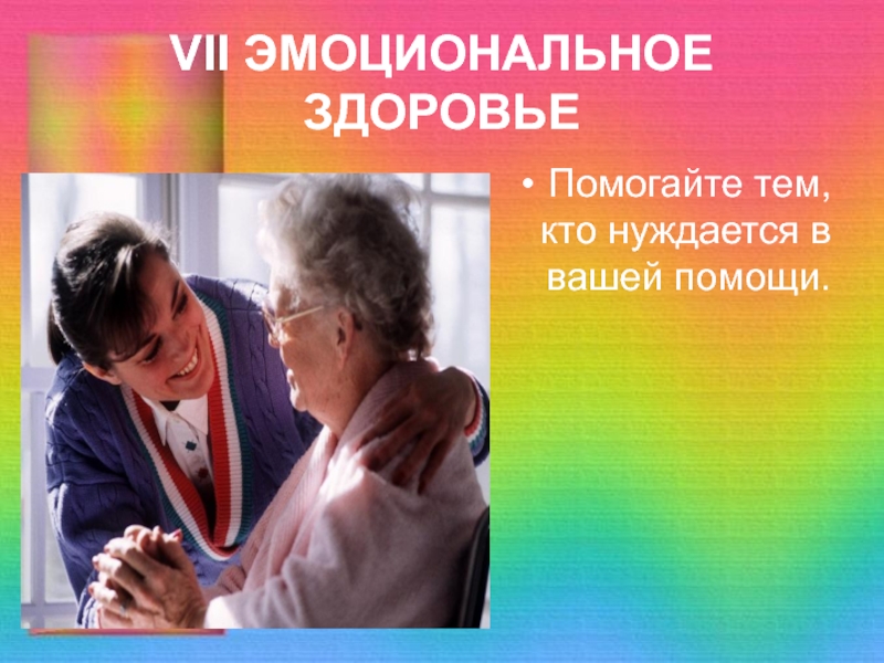 VII ЭМОЦИОНАЛЬНОЕ ЗДОРОВЬЕПомогайте тем, кто нуждается в вашей помощи.