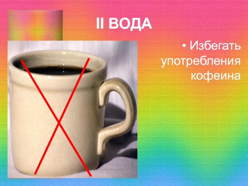 II ВОДАИзбегать употребления кофеина