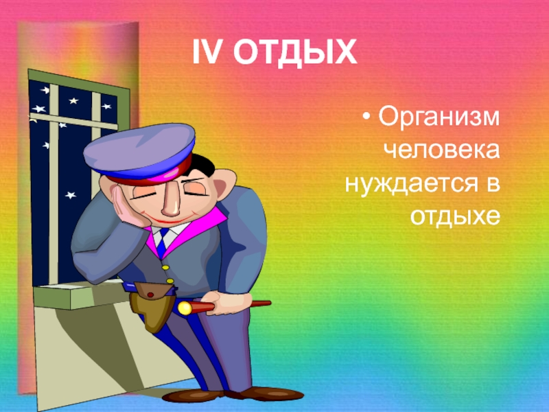 IV ОТДЫХОрганизм человека нуждается в отдыхе