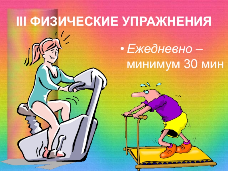 III ФИЗИЧЕСКИЕ УПРАЖНЕНИЯ Ежедневно – минимум 30 мин