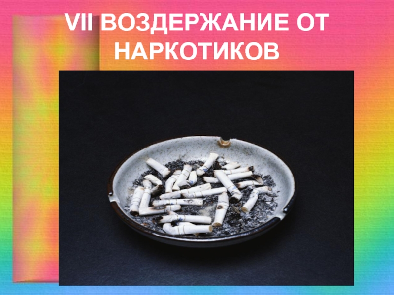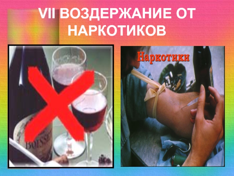 Слайд 67VII ВОЗДЕРЖАНИЕ ОТ НАРКОТИКОВ