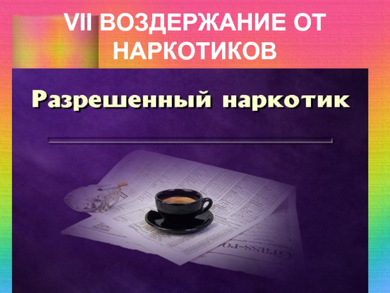 Слайд 64VII ВОЗДЕРЖАНИЕ ОТ НАРКОТИКОВ