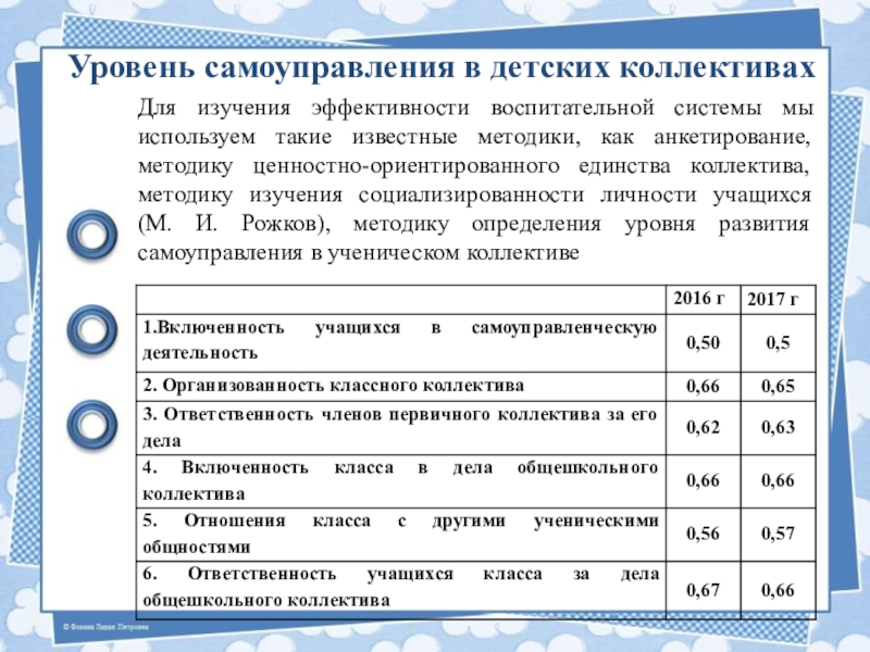 Уровень самоуправления в детских коллективах