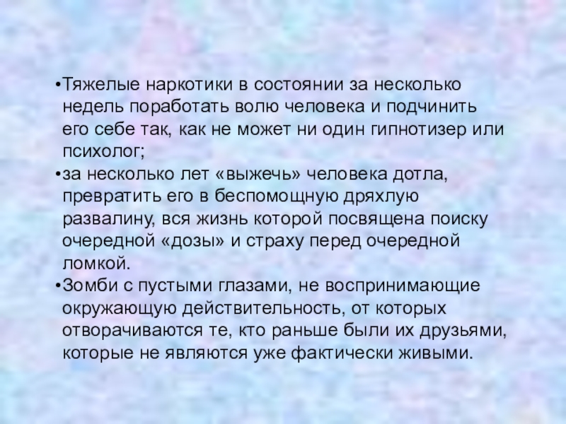 Слайд 51Тяжелые наркотики в состоянии за несколько недель поработать волю человека и