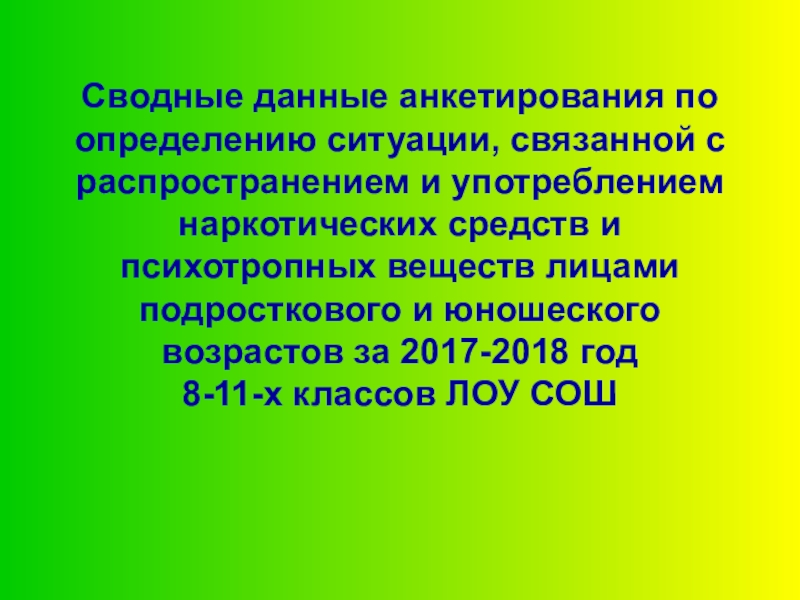 Сводные данные анкетирования по определению ситуации, связанной с распространением и употреблением