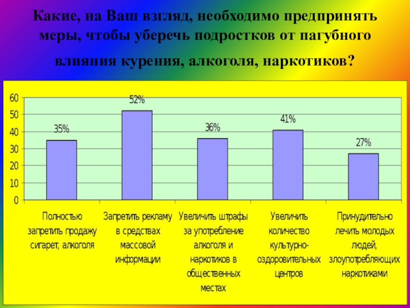Слайд 17Какие, на Ваш взгляд, необходимо предпринять меры, чтобы уберечь подростков от