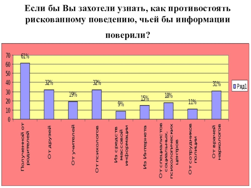 Слайд 16Если бы Вы захотели узнать, как противостоять рискованному поведению, чьей бы