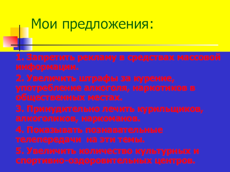 3. Принудительно лечить курильщиков, алкоголиков, наркоманов.