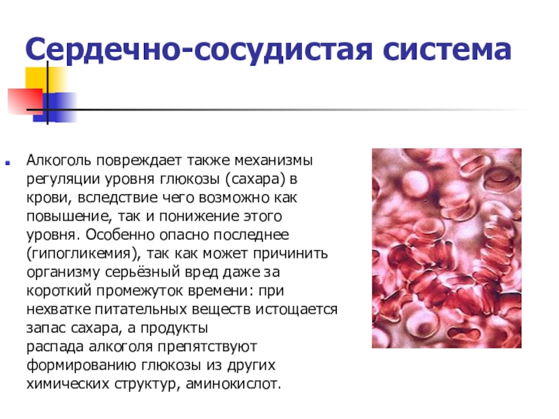 Алкоголь повреждает также механизмы регуляции уровня глюкозы (сахара) в крови, вследствие