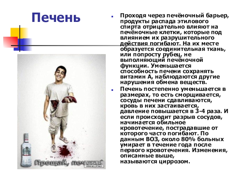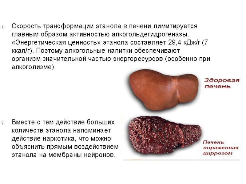 Проходя через печёночный барьер, продукты распада этилового спирта отрицательно влияют на печёночные