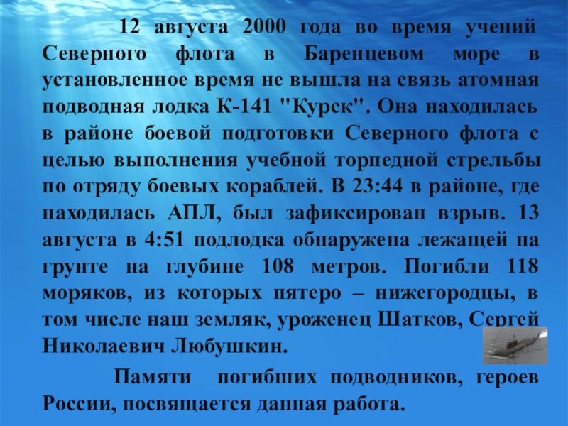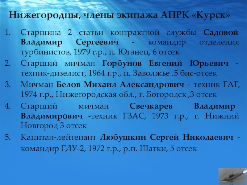 Нижегородцы, члены экипажа АПРК «Курск»