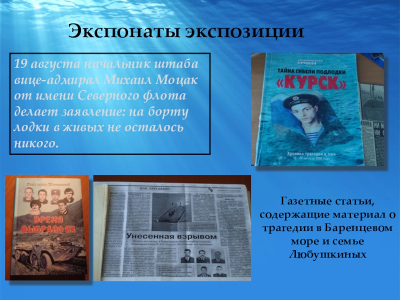 Газетные статьи, содержащие материал о трагедии в Баренцевом море и семье Любушкиных