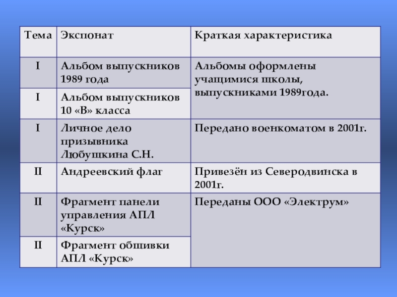 Содержание экспозиции: