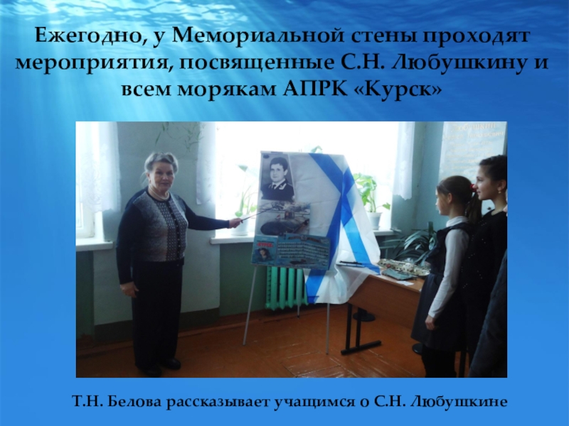 Т.Н. Белова рассказывает учащимся о С.Н. Любушкине