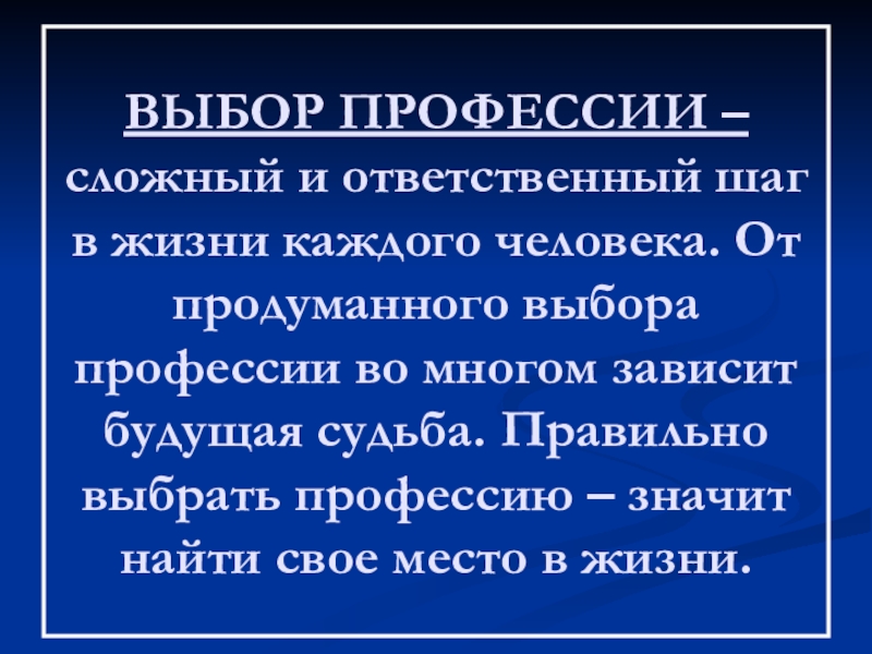 Слайд 24ВЫБОР ПРОФЕССИИ – сложный и ответственный шаг в жизни каждого человека.