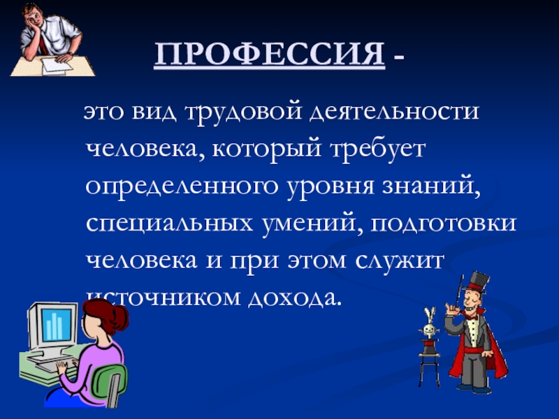 уровня знаний, специальных умений, подготовки человека и при этом служит источником дохода.