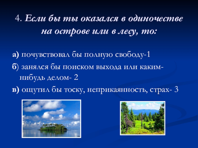 в) ощутил бы тоску, неприкаянность, страх- 3