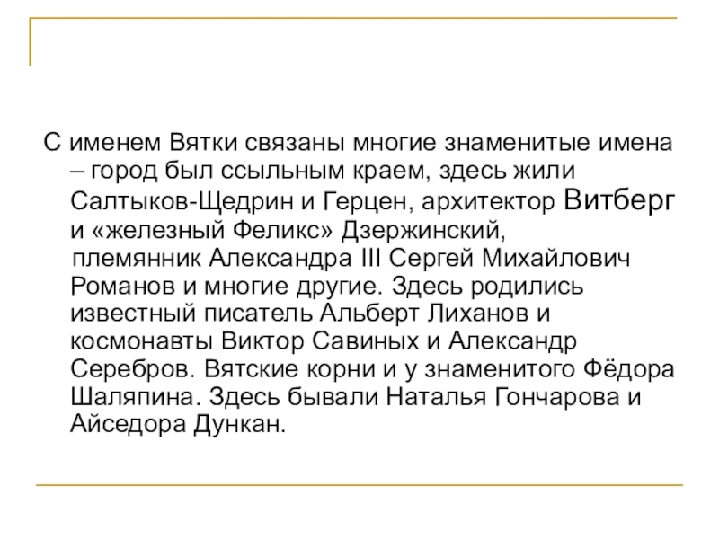 С именем Вятки связаны многие знаменитые имена – город был ссыльным краем, здесь жили Салтыков-Щедрин и Герцен,
