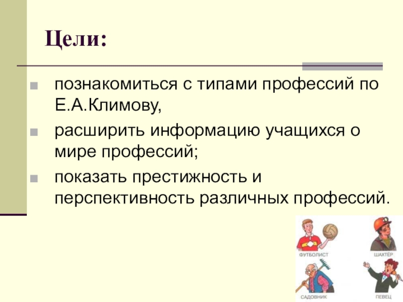 стране принято пользоваться классификацией профессора Е.А. Климова. Его классификация делит все профессии на 5 основных типов: